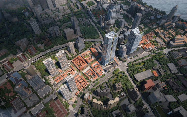 项目未来将呈现约240米和180米的超高层办公地标塔楼,重绘外滩天际线,与黄浦江对岸的“三件套”遥相呼应;