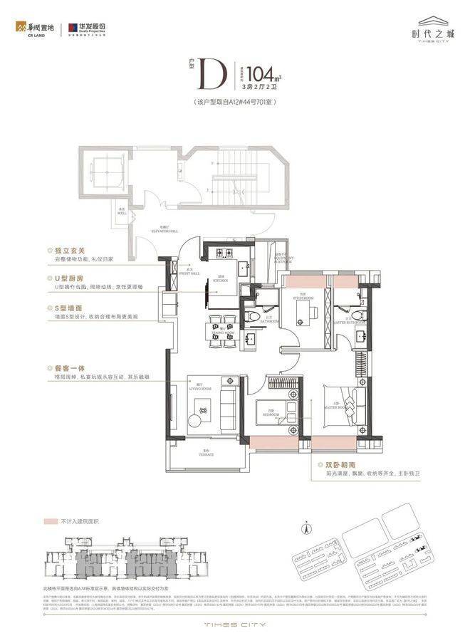 5、建面约104㎡3房户型,空间感与实用性兼备