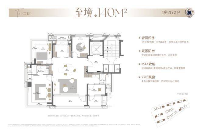 但事实上,壹江臻邸建面约140㎡的实际使用率做到了约97.3%,双阳台+双约270°视野+类一梯一户独立电梯厅+多飘窗。