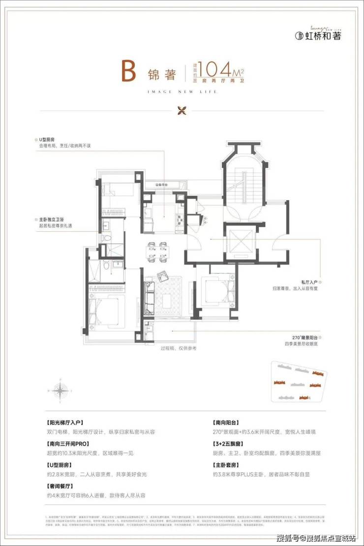 从户型图就能看到,这个房型是南向大面宽的设计,三开间面宽达到了约10.3米,赋予居所大气磅礴的空间感与层次感。百平米的不将就三房,实现房间数量及空间尺度的均好平衡,保证一家人舒适相处又各有天地,可以满足两口之家的改善起步,三口之家的其乐融融,三代同堂的多人口居住需要。