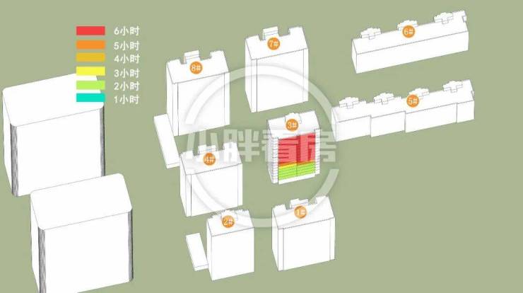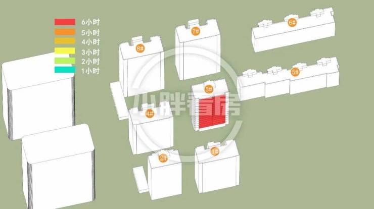 保利西源赋府的分析结果是这样:计算已考虑周边所有建筑的影响,结果表明西部商业不会对本次开盘楼栋产生遮挡,楼栋仅受地块内部影响。(说明:本文日照数据基于公示规划图纸文件,使用专业制作工具完成,仅供参考)