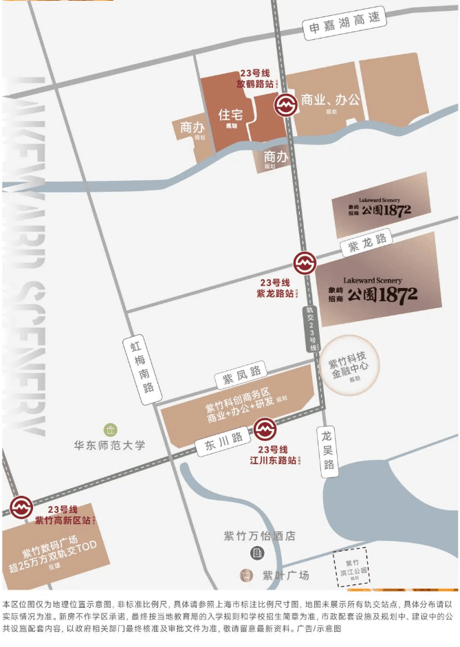 23号线(在建)是连接徐汇和闵行的重要轨交,目前项目不少外区域客户,如徐汇滨江、华泾,乃至漕河泾上班的客户,就是沿着23号线而来。以华泾为例,同等的地铁通勤时间,往北是豪宅林立,动辄12w,13w+的市区,往西是二手房8w+的七宝,浦江对岸的前滩更是无从下手,而如果选择距离工作地点仅6站地铁的吴泾板块,买房预算直接省下近40%!