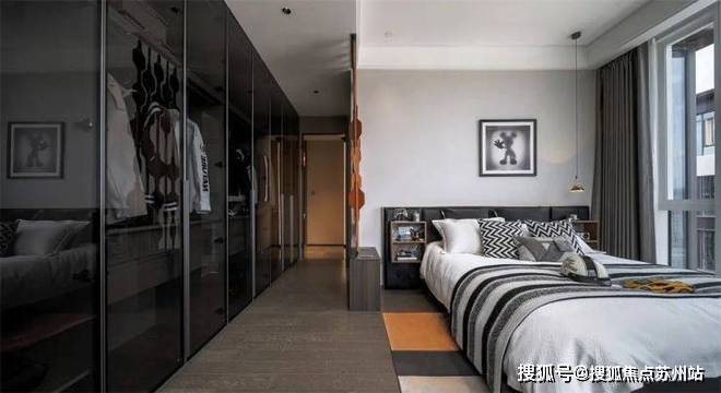 长辈房的布局并不落俗套,以床背板为弱隔断,划分出了睡眠空间和衣帽空间。