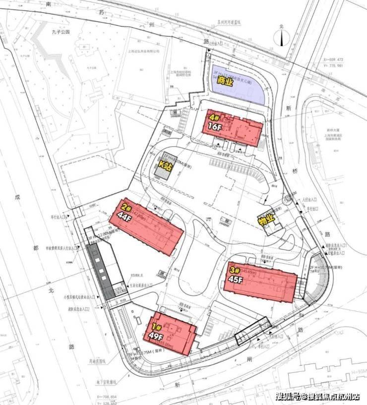 1#地块:分为南北两块:南块,东至新桥路,南至新闸路,西至成都北路,北至成都北路1012弄;北块,东至新桥路,南至新桥路51弄,西至九子公园,北至南苏州路。未来主力产品为超高层住宅。