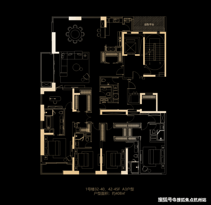 顶豪社交空间格局,普遍只有餐厅、客厅和阳台,该户型在南侧配置了一个家庭厅着实巧妙,可以是业主的茶室,也可以是女主人的手工室,当然也可作为X空间,随家庭结构和需求随心定制,书房、学习区、游戏区,女王化妆间等皆可。