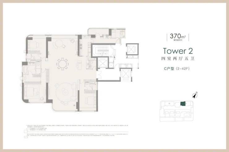 先说位置,此次370㎡户型与450㎡位于同一栋,且得房率接近80%,这在超高层产品中堪称奇迹,这意味着每一平米都承载着真实的生活价值,而非被摊派到公区。