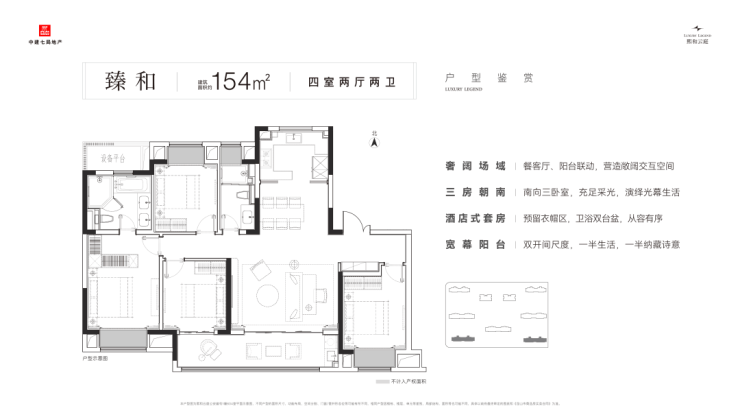 户型面积:建筑面积约135㎡、154㎡、180㎡、224㎡(全系四室,适配高阶改善需求)