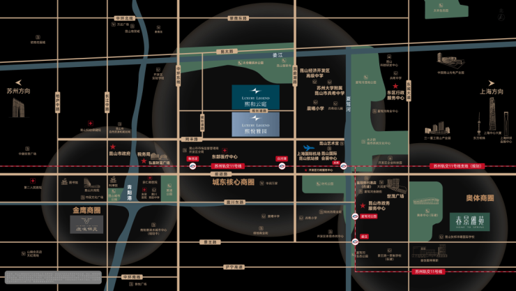 占据昆山开发区核芯位置,聚合全维优质资源,执领繁华万象,政务、交通、繁华、生态、文体、健康、教育七大城市级地标群,赋予生活更多丰盈体验。