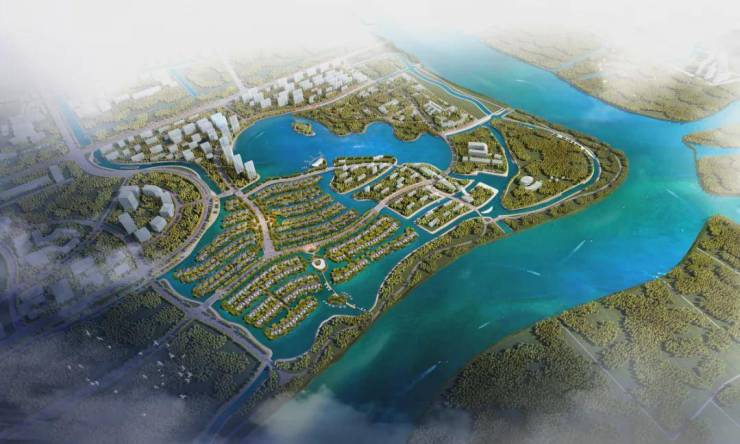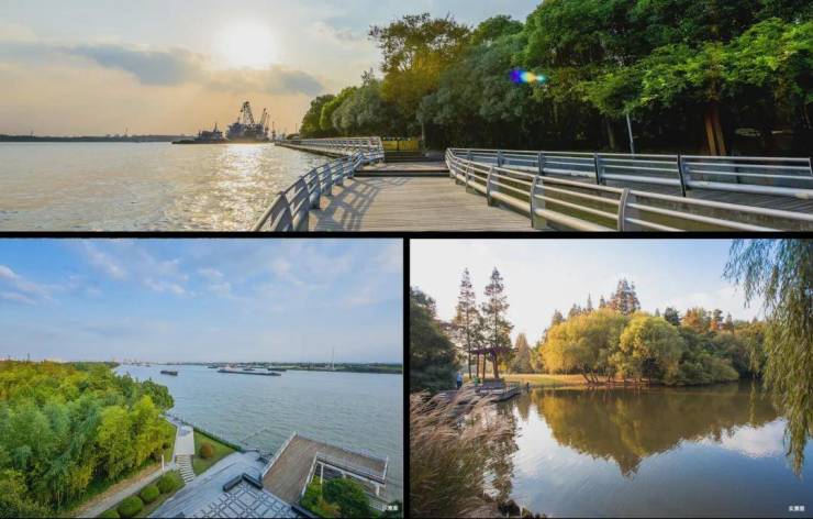 绿地景观沿黄浦江和兰香湖沿岸生长形成有序又自然的生态景观。