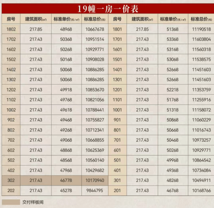 但这幢非同小可!建面约215方,既是项目的最大面积,也是小区的楼王,仅此一幢。终于就在11.19,这批房源预售证入市,均价约5.008万/平!先到先得!卖完就无。