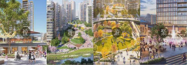 “谷”则是它包容万象的形态。这是一个由高端住宅、商业街区、地上交通环廊和公共景观共同构成的立体城市系统。
