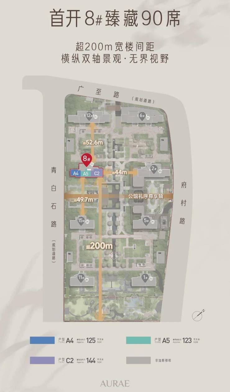 楼王之王:小区核心资源!双轴景观环绕!超阔楼间距最长约200m。无中轴不豪宅。