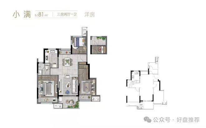 洋房 建面约81㎡,三室两厅