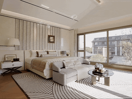 建发瑞湖总占地约 6.85 万㎡,总建面约 6.8 万㎡,容积率仅 1.25,远低于区域普遍 1.6 以上的竞品,这意味着更低的建筑密度、更宽的楼间距与更纯粹的居住体验。现代中式风格,铝板 + 玻璃幕墙外立面,线条流畅大气,建筑顶部轻盈飘逸,与城市天际线交相辉映,彰显海派高端质感。