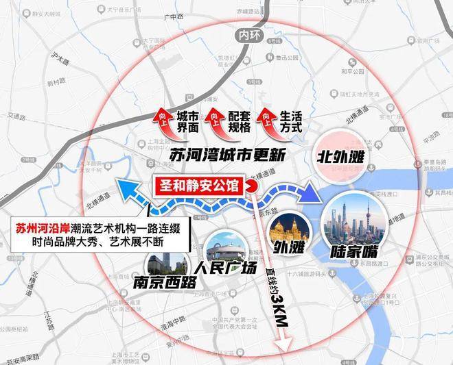 值得一提还有,比起目前苏河湾其他新房,圣和静安公馆距离地铁站和外滩是更近的,出行更方便的同时,也拥揽了更近距离的江河以及三件套视野!