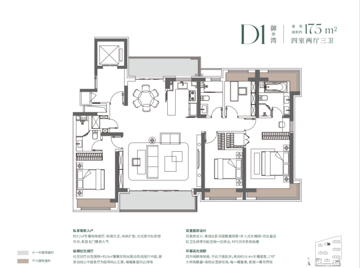 如果有进阶改善置业需求的客户,可以选择建面约140/175㎡4房2厅3卫!