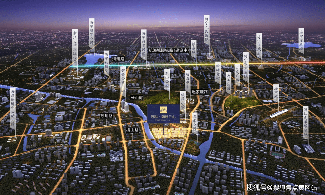 万科·朝起云山府,位于城芯东山脚下,处在“东西山,核心景观轴线之上。项目北侧横山路,西侧俞家桥路,南侧规划住宅用地,东侧毗邻海宁的母亲河长山河。 东山城芯, 海宁城市发源地,配套醇熟。