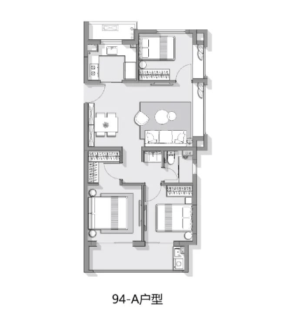 刚需房就要考虑三代人同住或者一家四口居住对房间数量的要求,这样考虑的话,房子最少应该是三居室,那89㎡的紧凑型小三房就更合适。