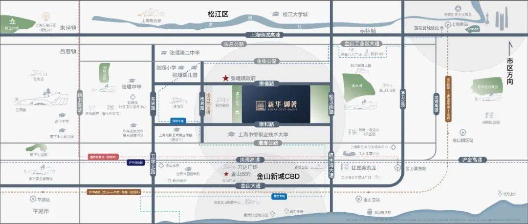 作为上海西南方向的重要门户,多条高速线路穿梭于金山,出门便是莲张专线起始点,一杯咖啡的时间就能到达黄浦江畔。
