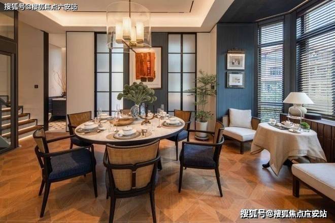 客餐厅采用一体化设计,通过石材、影木、皮革、金属、玻璃等不同材质在光影下的交织,形成张弛有度的现代轻奢多元的场景体验,内敛优雅,充盈着浓郁的都市质感。
