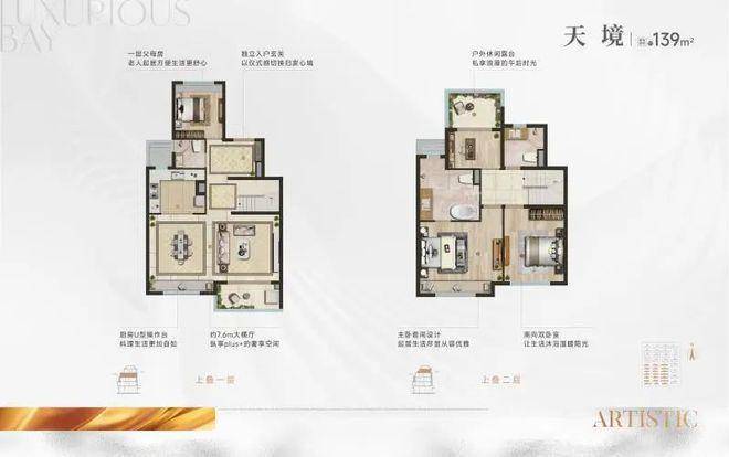 【复地·星愉湾】的叠墅,上叠约139m²、下叠约155m²,具体到每一叠又各有韵味,向理想的惬意墅居生活致敬。项目户型图如下: