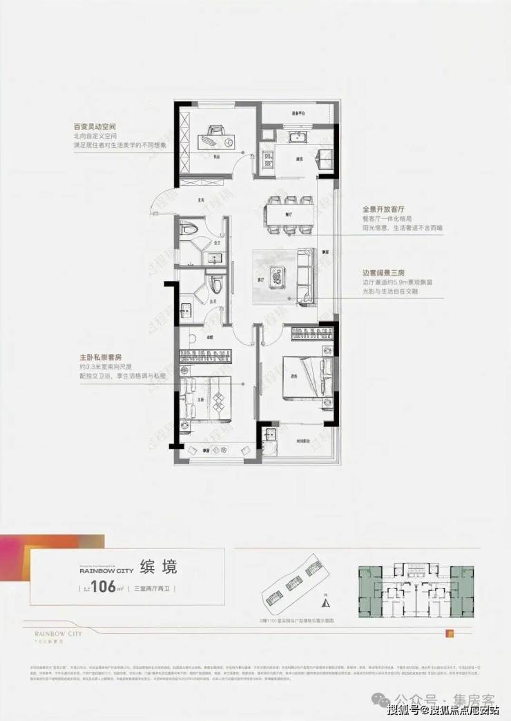 建面约100方户型: