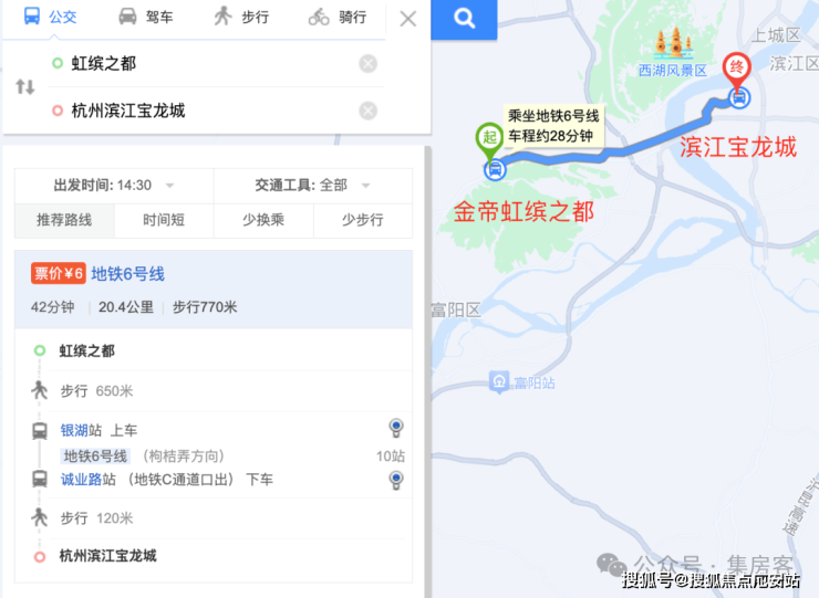 到滨江宝龙城自驾约半小时,如果乘坐地铁,地铁6号线上大约所需28min:
