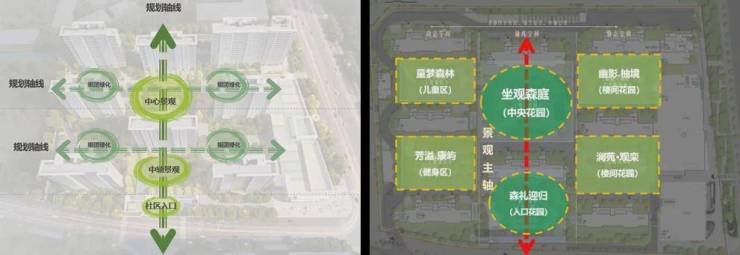景观规划:“两轴四园”设计,含580米中央景观轴、300米健康轴及童乐园等主题园区,移植大胸径乔木;