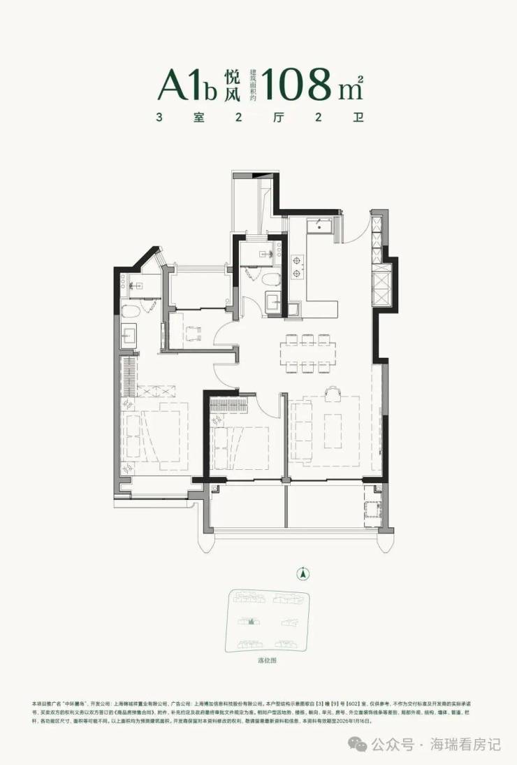 建面约108㎡3房2厅2卫:该户型最亮眼的便是三阳台设计,整体尺度感足以碾压市面上约120㎡的户型。