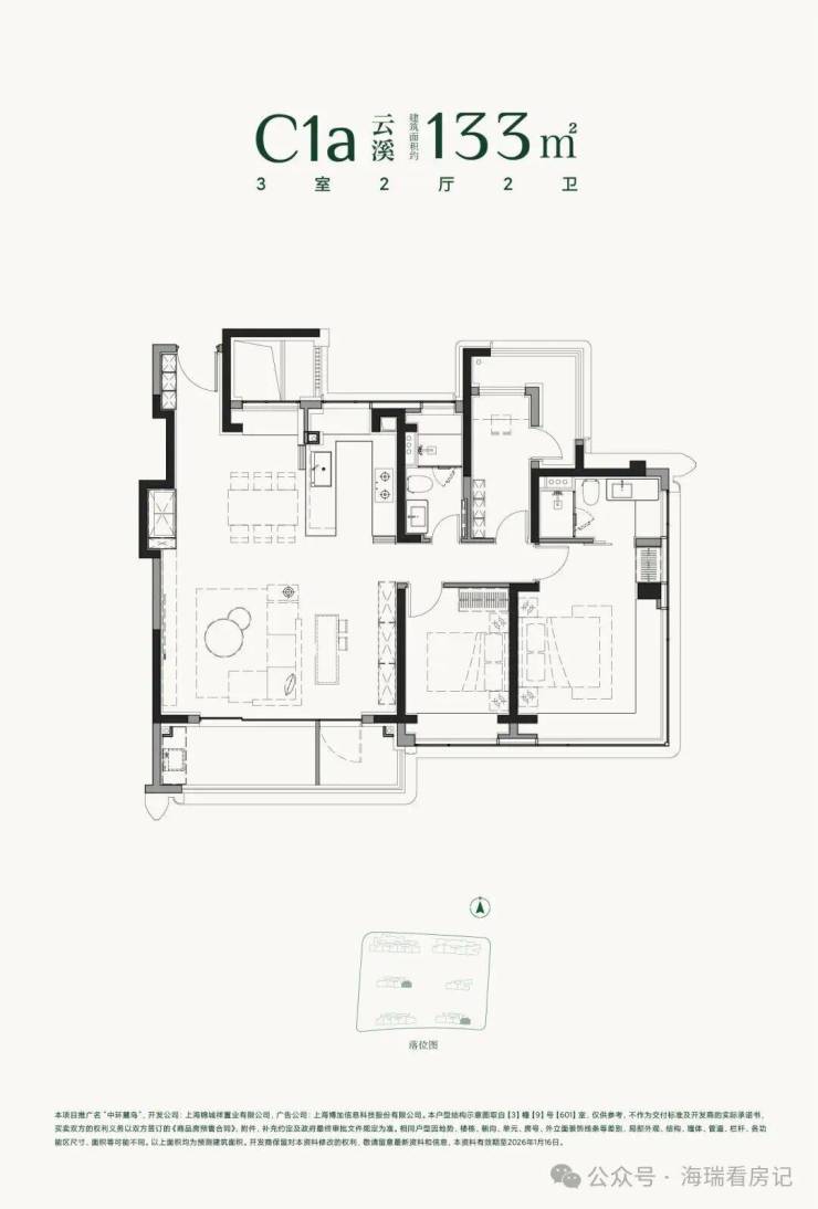 The unit has a construction area of approximately 133 square meters, featuring 3 bedrooms, 2 living rooms, and 2 bathrooms. This layout has been further upgraded based on the original design of three balconies, a 270° corner balcony in the secondary bedroom, and a 270° corner bay window in the master bedroom.