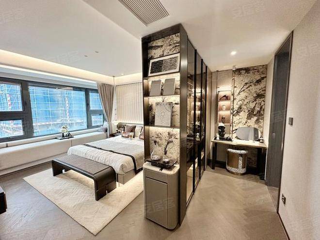 豪华的套房设计,北侧卫浴飘窗+南向床边双飘窗的设计,更是把这个空间的视野和收纳空间延展开来,尺度感真的很惊人。