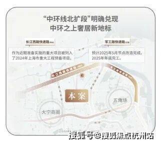 交通方面: 项目紧邻长江西路地铁站(直线距离约150米),1站江杨南路,5站复旦,7站五角场。中环线北扩段明确兑现,军工路快速路25年开工,长江西路快速路列入上海市重大工程清单预备项目,快速链通城心,随着中环线北扩段的政策明确,淞南将正式进入中环时间。未来经逸仙高架,进入南北高架、内环高架、中环高架,可快速链通南北上海。