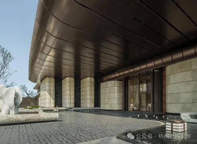 保利·天奕以“玉琮之门”讲述归家礼遇,在城市与社区的接驳地带,以一道“会呼吸的烟火幕墙”重新定义了上盖型物业的界面。主入口以杭州博物馆镇馆之宝“玉琮”为设计原型,将其转译为序列化的柱式与石台。
