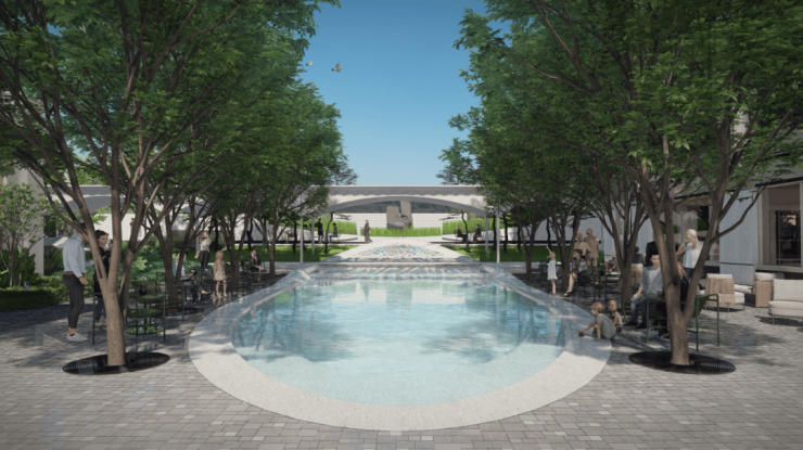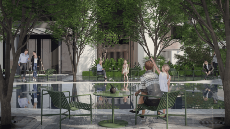 所以万科中興傲舍这次做了开放式的具有艺术感的街道。挖掘商务印书馆的在地文化特色,打造如美术馆一般的街道,包括生态友好的四季林荫道、友好的城市家具及服务设施、艺术转角空间等。