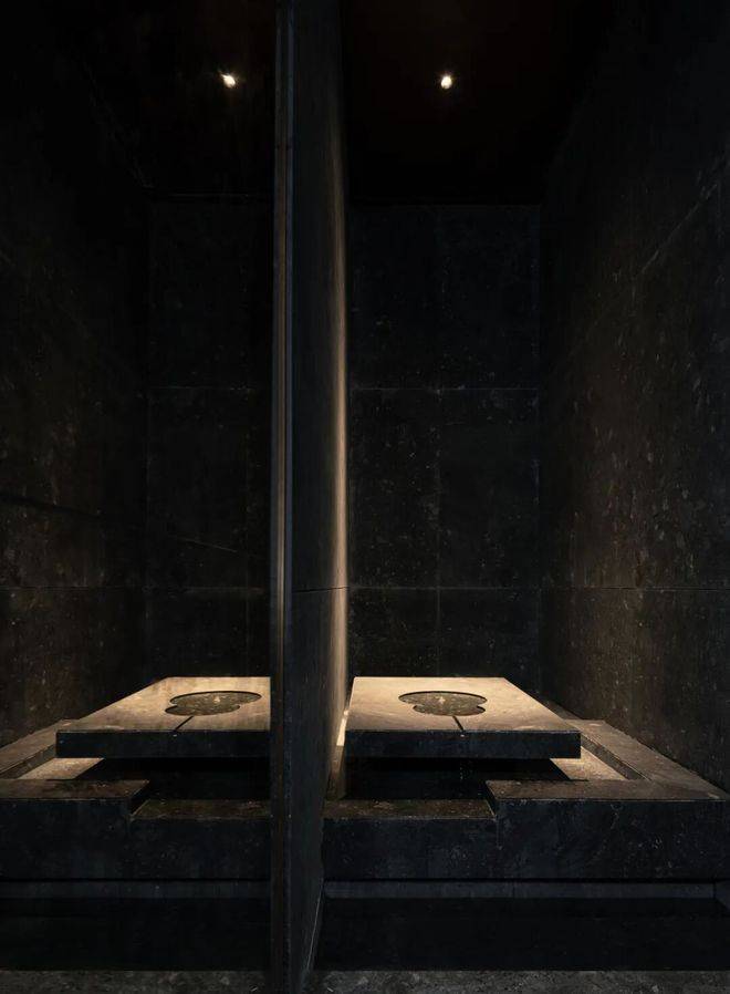 ▪️酒窖深处是私享雪茄室,白色皮质屏风的柔与金色雪茄柜的刚形成张力。打开柜门,松木的香味悄然释放。