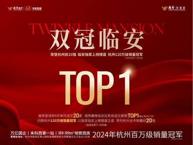 9月,越秀星颂府再次以硬核数据展现了其作为青山湖板块产品标杆的魅力,持续热销,登顶临安新房成交套数榜首,问鼎杭州120万级销量冠军。(数据来源于:克而瑞)