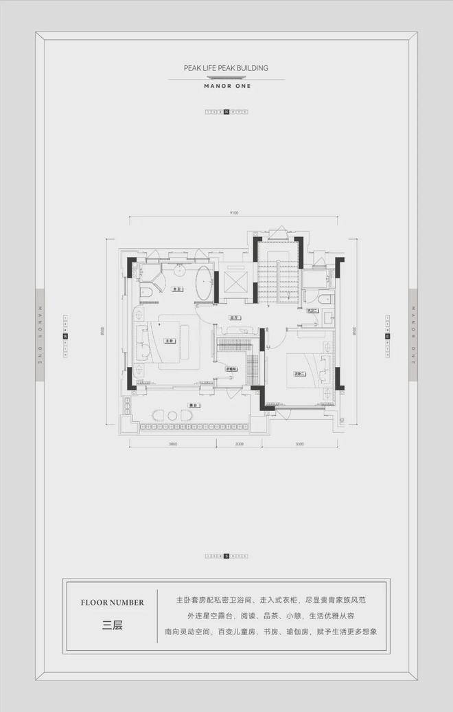 二三楼可以设计为次卧+次卫+超大套房的功能布局。套房中,放得下浴缸的卫生间和走入式衣帽间,才是「享受生活」的最佳标准。而南向的景观露台,则是赏花观景、沏茶品茗的私享天地。