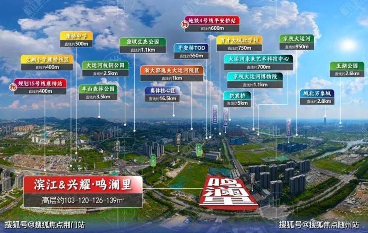 距离京杭大运河仅800米,饭后散步可达。文化地标大运河博物馆距离项目仅约1.3公里,邵逸夫医院大运河院区更近,只有约1.2公里,鸣澜里到15号线地铁康桥站(在建)仅约300米,地铁4号线平安桥站TOD约800米。以上这些都是家门口步行可达的配套。