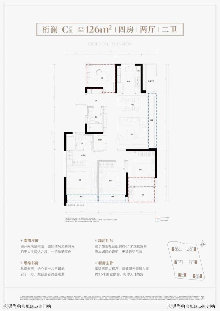 南向三开间朝南,约9.8米大面宽,约7米阔绰阳台,餐客厅贯通,并连接阳台,百变待客空间;套房式主卧,南联阔景飘窗,栖居更温馨舒适。