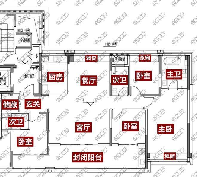 该户型赠送面积相对较少,仅有2个飘窗设计;