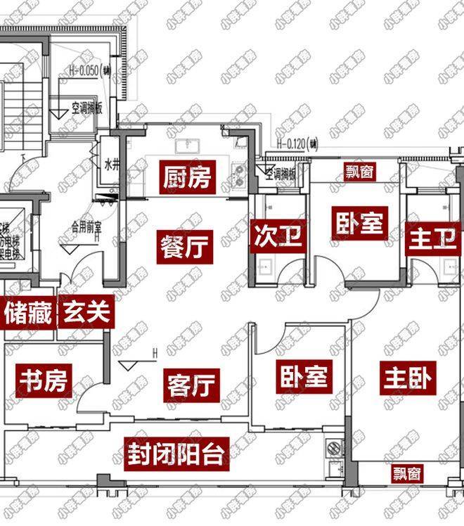 该户型赠送面积相对较少,仅有3个飘窗设计;