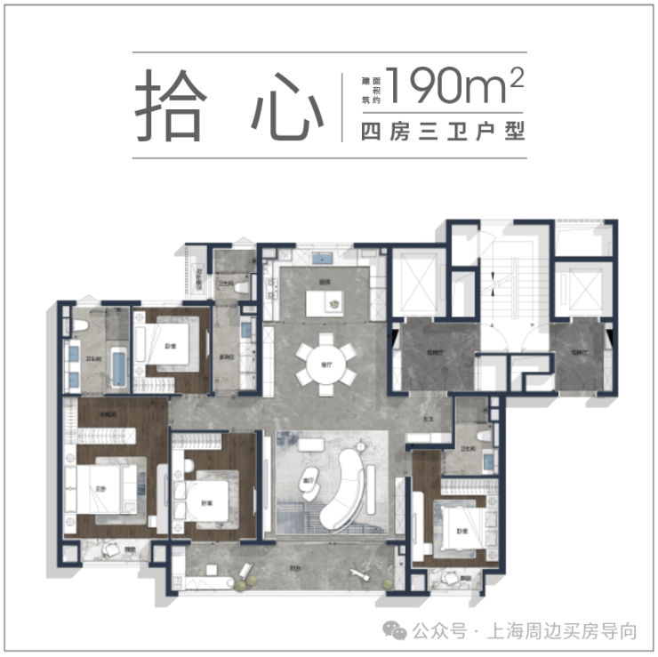 拾心 | 建筑面积约190㎡四房三卫户型