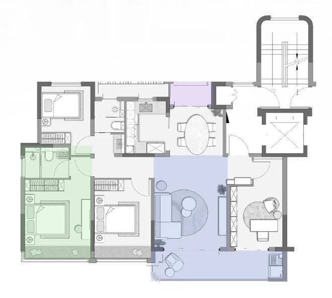一方面,满足了客户的私密空间尺度,另一方面又考虑到家庭需求,给每个家庭成员充分的尊重。