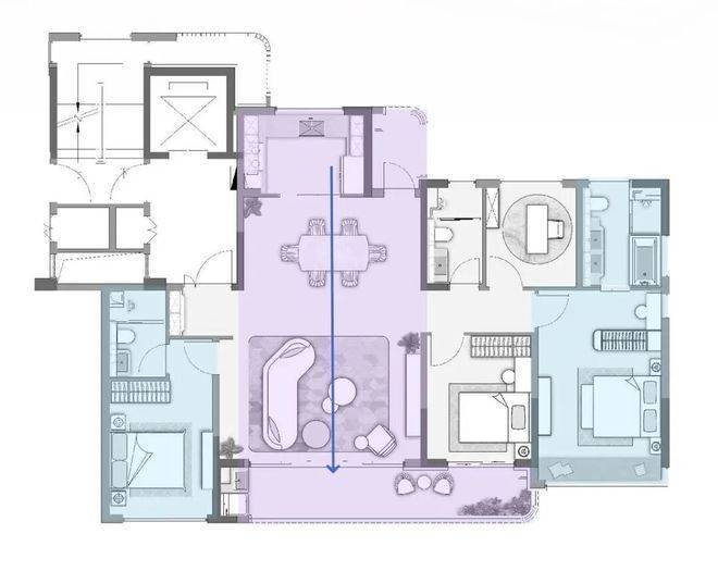 于是,在约174㎡的户型里,我们见到了【生活场景的进一步升级】。