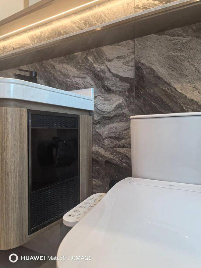 无论主卫、客卫都装有德国品牌的电热毛巾架……