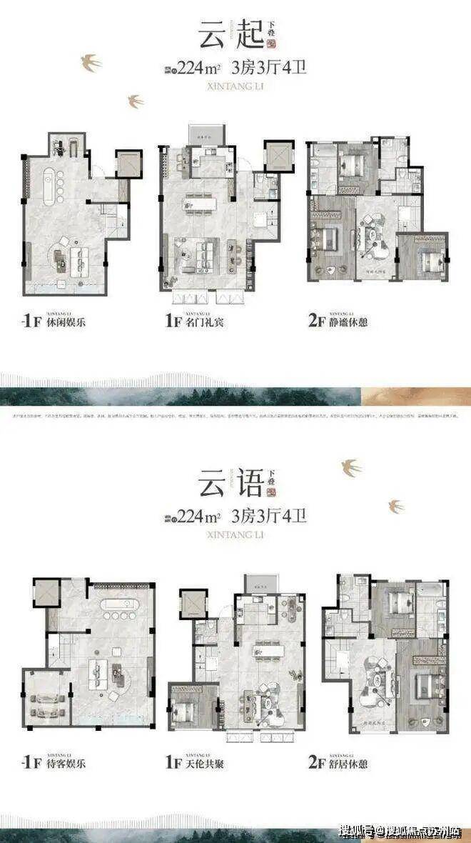 下叠:224-363㎡(赠送花园15-30㎡+挑高4.95米地下室50-140㎡)