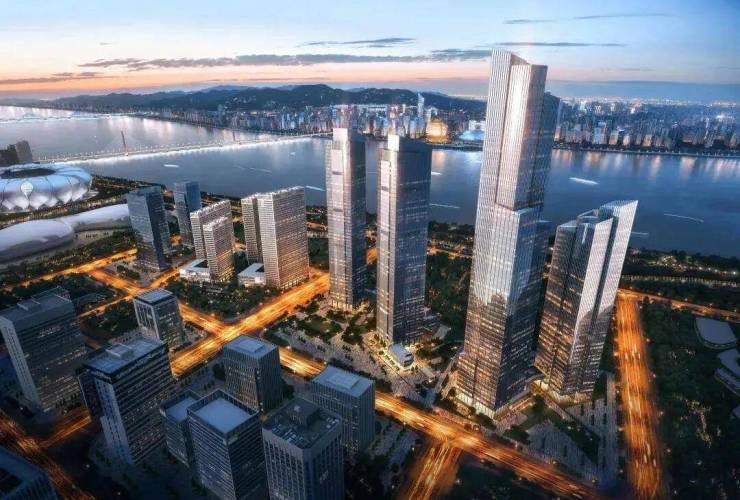 沿江而立,与钱江世纪城超高层集群相映成辉,是钱塘江南岸极具辨识度的地标建筑群。