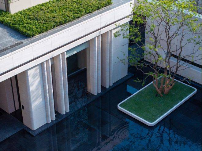 这种一般只存在于公园里的景观设计,这一次,招商将其挪入了私家园林。配合门外梧桐掩映,老静安的调性,跃然纸上。