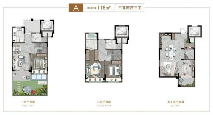 约123平上叠3房户型,共上下两层,全明设计,格局开阔,宽景阳台,上承天空,下承生活。