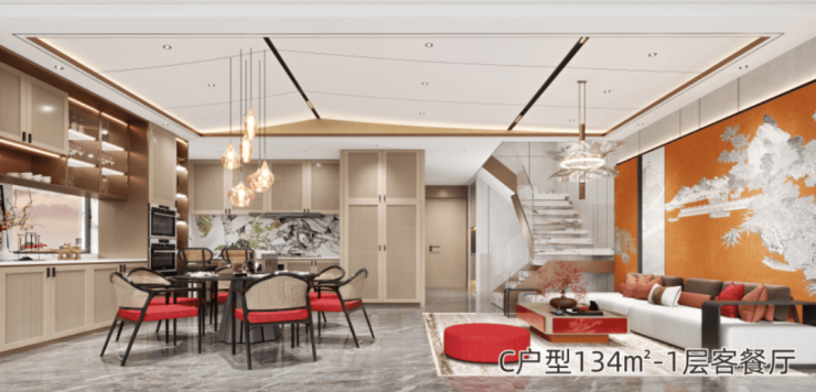 上叠(120-134㎡):顶层设星空露台,客厅挑高设计,凸显高端改善属性。